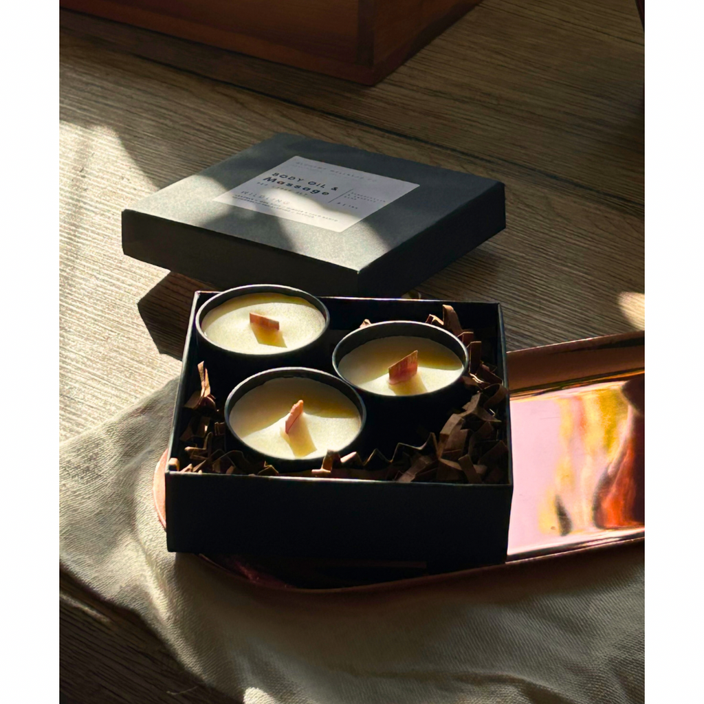 Treat yourself, your partner or both with this hand poured body oil & massage candle. A blend of natural ingredients like beeswax, coco crème & shea butter for its buttery, silly smooth texture. Give in to relaxation with this one-of-a-kind candle & its skin nourishing properties. Perfect for burning with a bath & pouring on after or setting the mood before some sensuous massages.