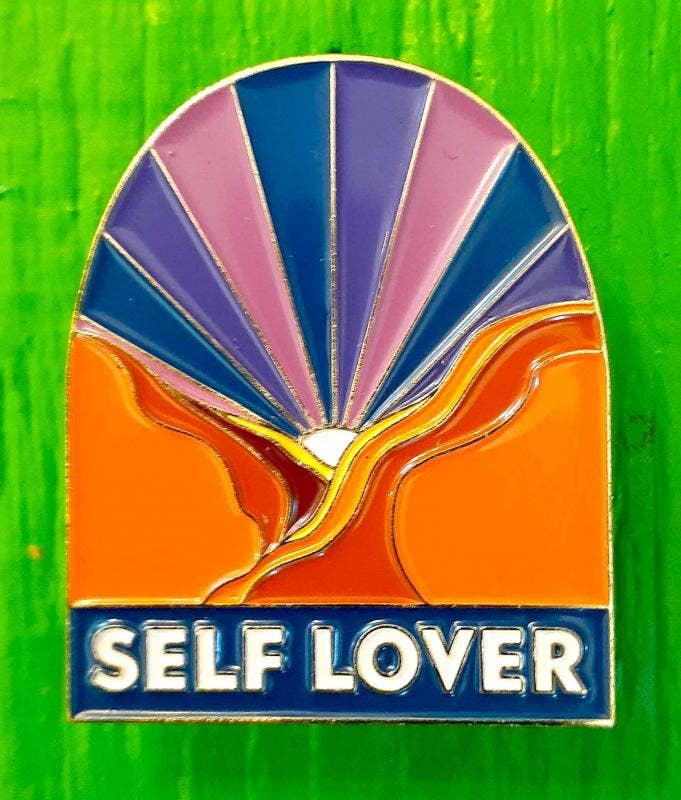 Give yourself mountains and rays of of pleasure as you ride into the sunset, wearing this delightful soft enamel pin designed by the creator of masturbation liberation handbook Bang!